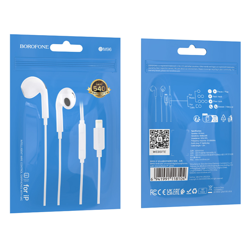 Навушники Borofone BM96 Brilliant Lightning (Білий)